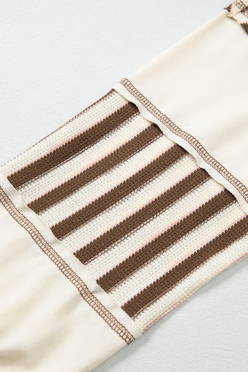 Women's Multi-color Striped Print Lapel Slit Long Sleeve Top